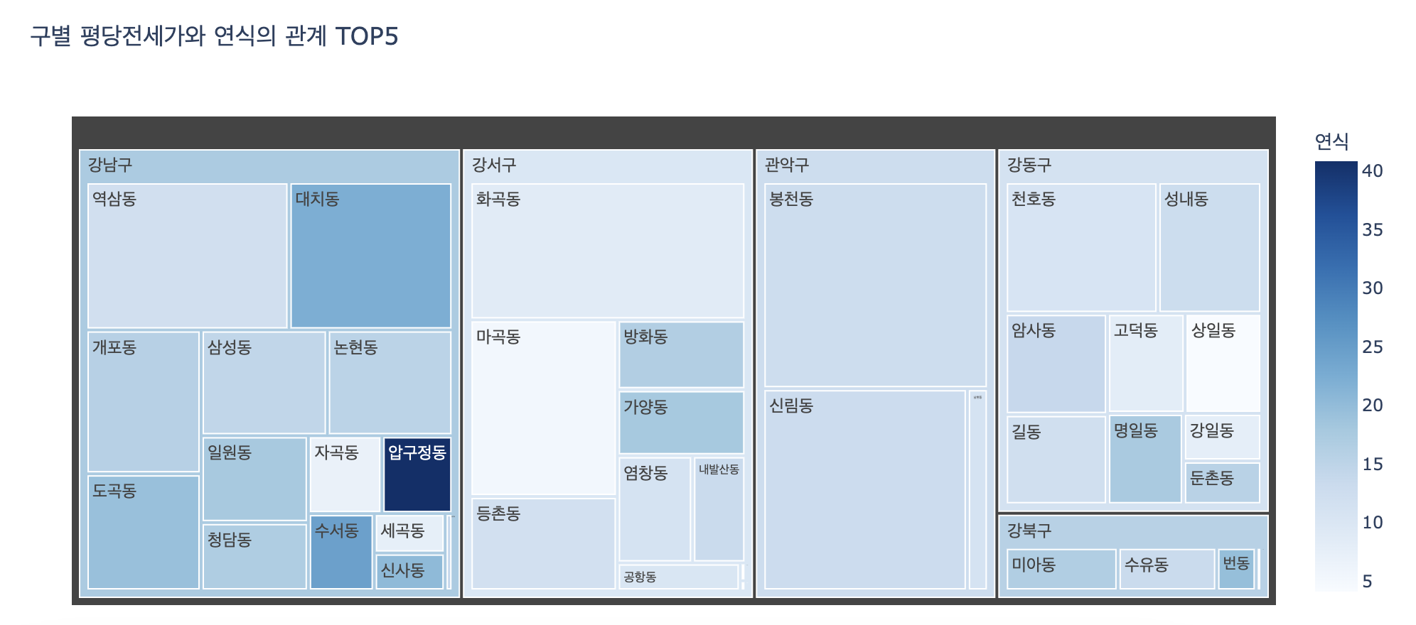 7. 구별, 연식(색), 전세가(크기) 트리맵