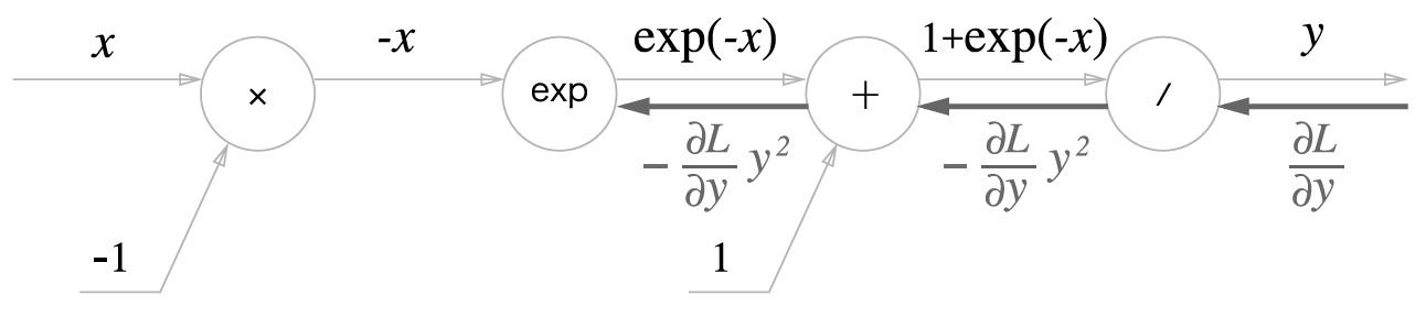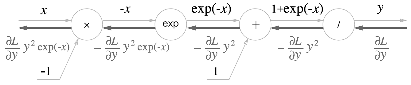 그림 5-19의 Sigmoid 계층의 순전파 계산그래프를 활용해 역전파 계산그래프를 그려보자.