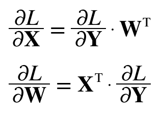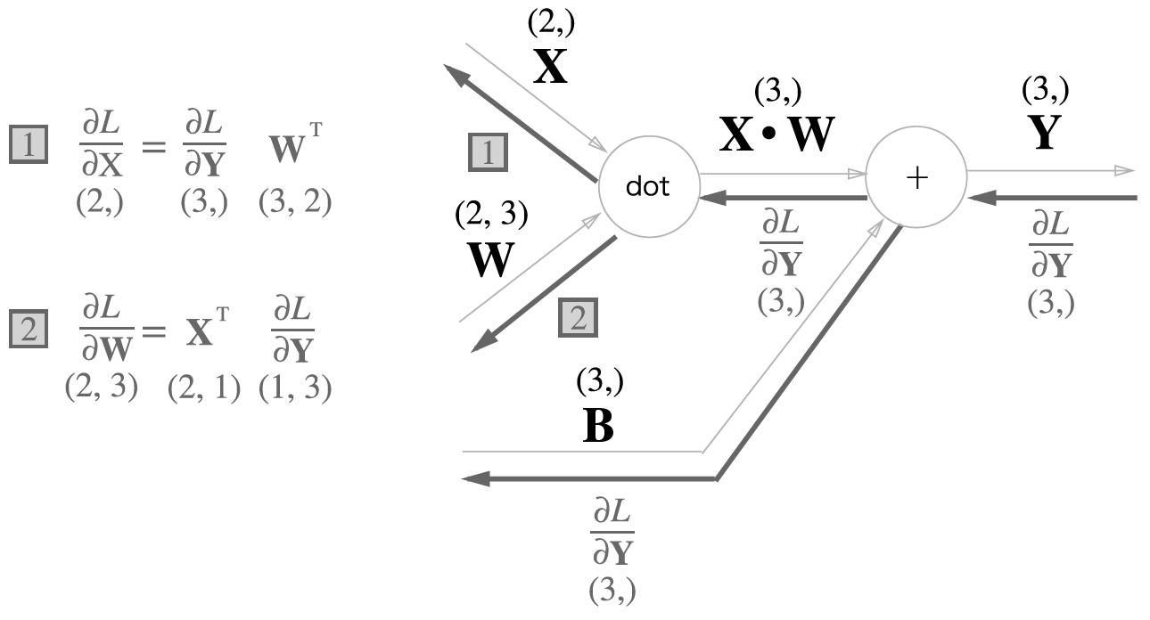 역전파를 구하면 그림 5-25와 같이 되며, 여기서 T는 전치행렬을 뜻한다.