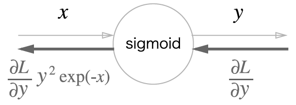 3단계 : 'exp'노드는 식 5-11과 같이 미분된다.