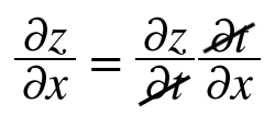 식 5-1을 예로 들면 x에 대한 z의 미분은 t에 대한 z의 미분과 x에 대한 t의 미분의 곱으로 나타낼 수 있다.