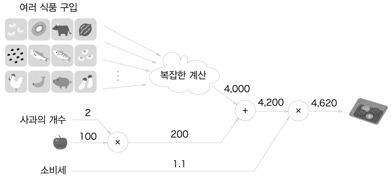 계산 그래프는 국소적 계산에 집중한다. 여기서 국소적 계산이란 전체에서 어떤 일이 일어나든 상관없이 자신과 직접 관계된 정보만으로 결과를 출력한다는 것이다.