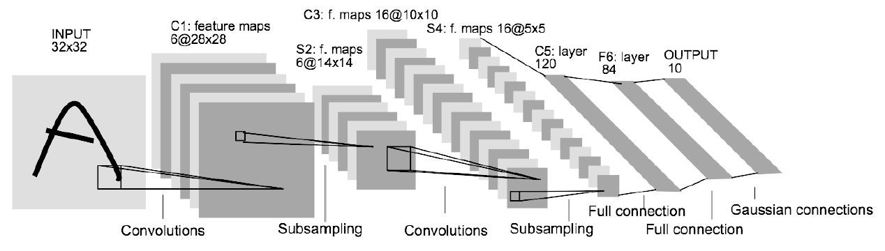 LeNet은 서브샘플링을 하여 중간 데이터의 크기가 작아지지만 현재의 CNN은 최대 풀링이 주류이다.