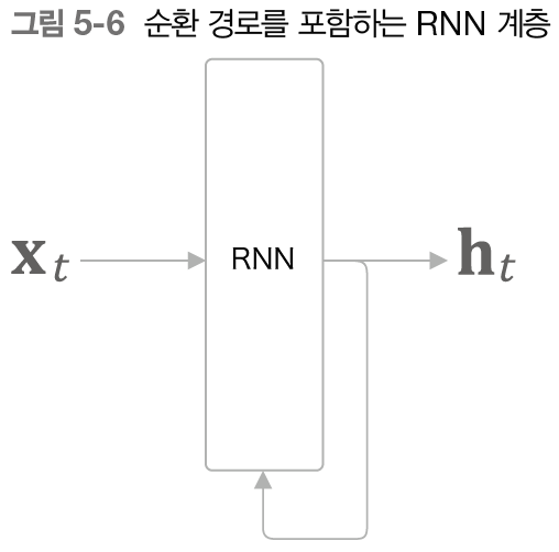 그림 5-6처럼 RNN계층은 순환하는 경로를 포함한다.