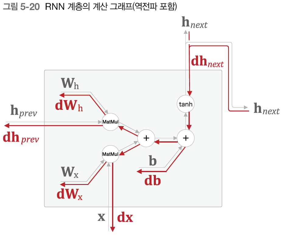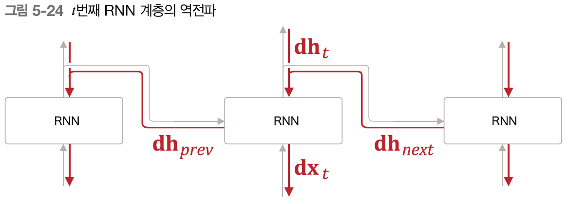 여기서 오차역전파법은 '시간 방향으로 펼친 신경망의 오차역전파법'이라는 뜻으로 BPTT(Backpropagation Through Time)라고 한다.