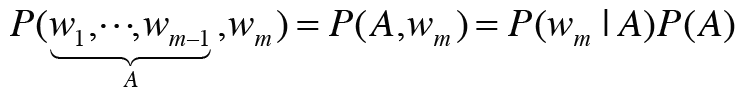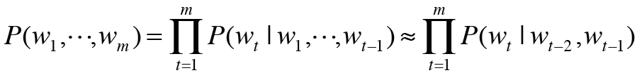 이를 달리하면 P(w1, ..., wm)을 구하기 위해선 P(wt | w1, ..., wt-1) 확률을 구하면 된다.
