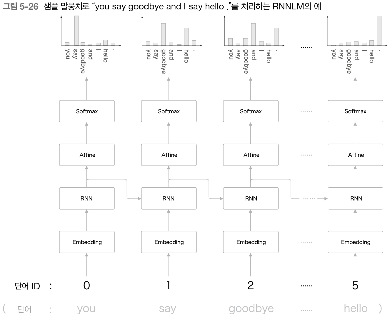 RNNLM의 최종 계층 구성은 그림 5-30과 같으며,