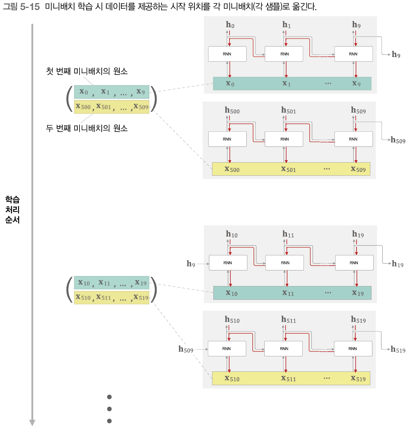 미치배치 학습할 때는 데이터를 주는 시작 위치를 각 미니배치의 시작 위치로 옮겨주면 된다.