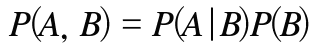 A와 B가 모두 일어날 확률 P(A, B)는 B가 일어날 확률 P(B)와 B가 일어난 후 A가 일어날 확률 P(A|B)를 곱한 값과 같다.