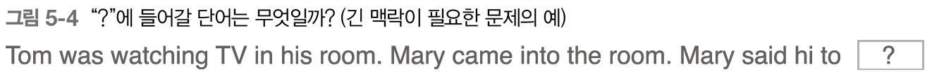 그림 5-4와 같은 문제에서 ?의 답을 하려면 18번째 앞인 Tom을 기억해야 한다.