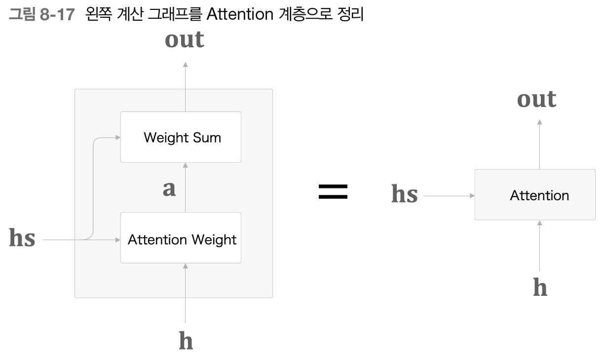 우리는 이를 Attention 계층이라 부르기로 한다.