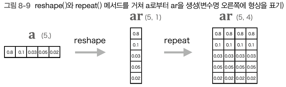 이를 구현해보면 가중치 a를 reshape와 repeat을 거쳐 형상을 변환(ar)한다.