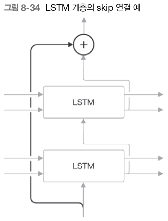 그림 8-34와 같이 skip 연결은 '계층을 건너뛰는 연결'로, 2개의 출력이 '더해'진다.