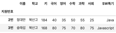 df = pd.read_excel('score.xlsx', index_col='지원번호') # index 설정