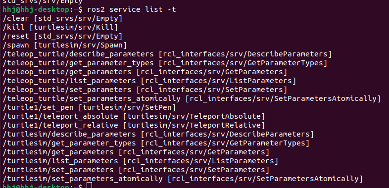 ros2 service list -t