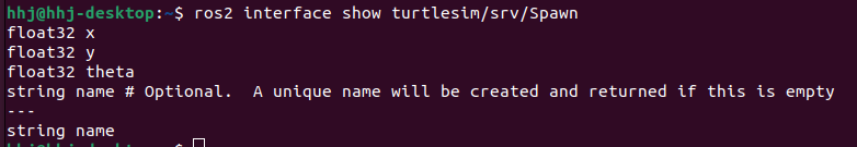 ros2 interface show turtlesim/srv/Spawn