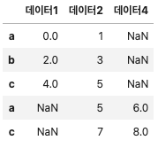 - axis : 0(default값) 행방향 / 1 열방향 결합