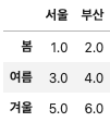 columns=['서울','부산'])
