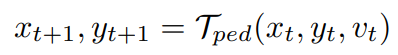 자동차와 동일하게 보행자의 미래 위치를 예측하기 위해 kinematic bicycle 모델을 사용하며 현재위치, 속도를 바탕으로 보행자가 일정한 속도로 이동한다고 가정하고 다음 시간의 위치를 예측한다. 보행자와의 충돌 가능성을 확인하기 위해 자차와 보행자 바운딩 박스의 IoU를 계산하며, 차량 충돌방지와 유사한 방법이다. 차량과 보행자를 분리한 이유는 안전을 우선하여 차량이 감속하지 않으면 보행자가 무단횡단을 시도할 것이라는 가정같이 가능성이 낮은 시나리오도 고려하는데 목적이 있는 것으로 보인다.
