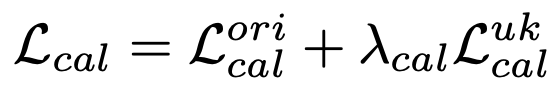 Unknown Object Synthesis, Predictive Distribution Calibration를 통해 Mc에서 Mo로 학습시키기 위한 loss는 아래와 같다.