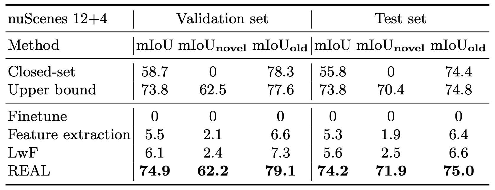 이를 위해 open-set semantic segmentation과 incremental learning를 모두 활용한 REdundAncy cLassifier(REAL)을 제안한다. 실험결과는 REAL이 open-set semantic segmentation에서 최신 성능을 달성함과 동시에 incremental learning동안 large margin을 두고 망각 문제를 완화한다.