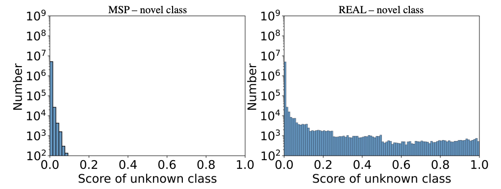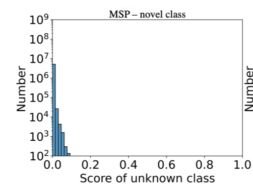 closed-set 예측에서 novel 객체는 높은 점수를 가지며 old class로 분류가 된다. 저자들은 이를 probability calibration으로 완화하려했고 조정된 점수는 Fig 3(b)와 같다.