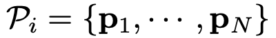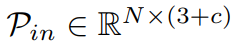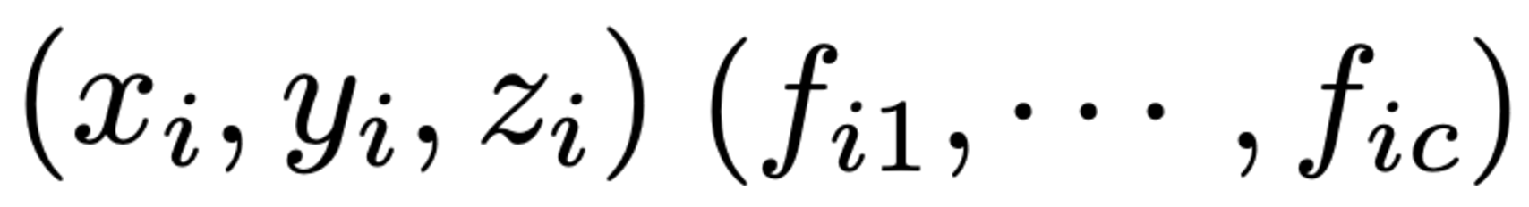 각 sample의 point cloud, 참고로 point cloud pi는 point coordinate (x, y, z)와 channel feature c로 구성된다.