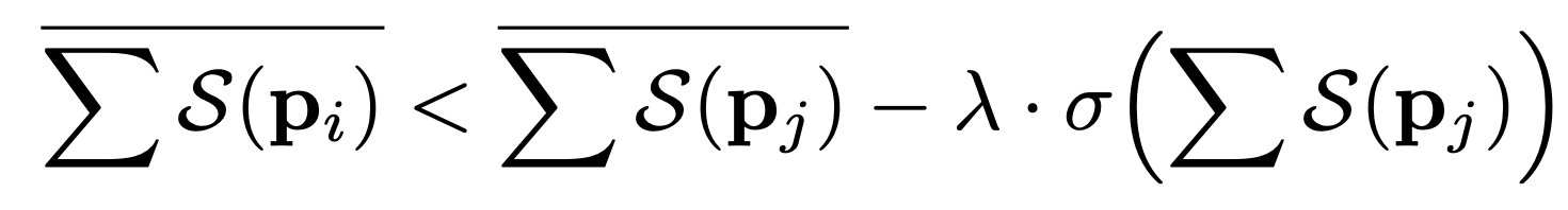 seed point는 상위 50%의 이웃을 선택하여 p0에서 p1, p2 점차 증가하게된다. 그 후 p0의 평균 불확실성 점수는 증가하며 아래의 정지조건이 되면 멈추게 된다.