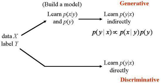 데이터 X가 생성되면서 p(Y), p(X|Y)으로 학습하고, Bayesian을 사용해 p(Y|X)값을 간접적으로 도출
