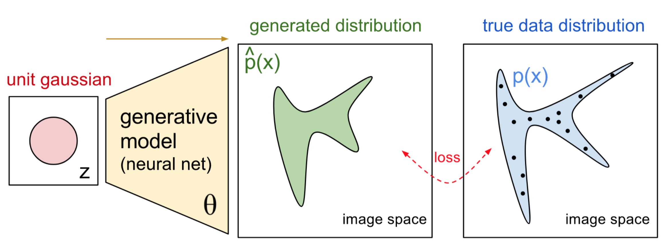 대표적인 예: Gaussian Mixture Model(GMM), Generative Adversarial Network(GAN) 등