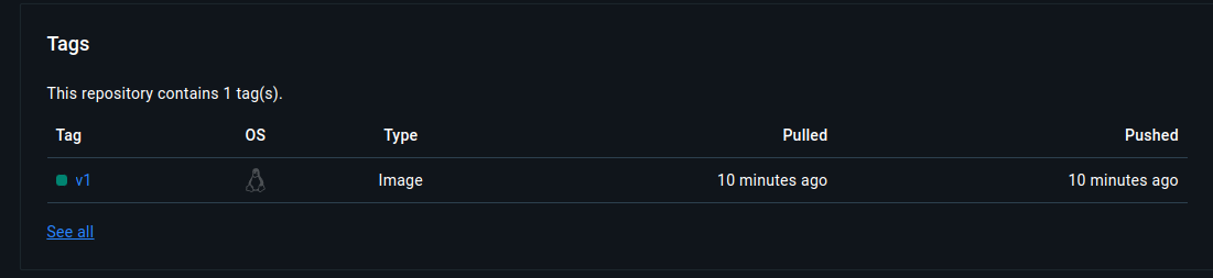 여기서도 tag를 latest로 하면 에러가 뜬다. 그러니 v1, version1 같은 tag로 설정하는게 좋을듯