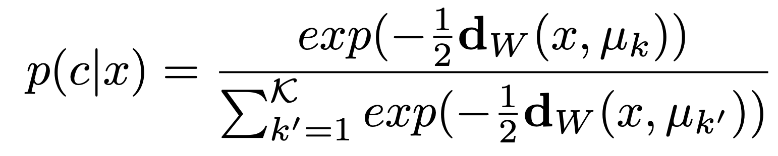 NCM을 활용하여 클래스 조건확률을 아래의 식과 같이 softmax 형태로 계산한다.
