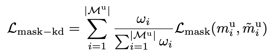 mask proposal의 knowledge를 유지하면서 높은 objectness score를 맞추기 위해, objectness score로 mask distillation을 재계산한다. 낮은 objectness score를 distill함으로써, objectness score가 objectness를 잘못 인식했을 경우를 완화시킨다. 또한 일부 mask proposal은 objectness score가 낮은 unseen class에 대해 일반화 성능을 개선한다.