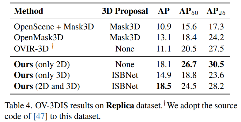 point cloud 기반의 instance segmenter와 2D image based network를 활용한 open vocabulary instacne segmentation을 제안한다.