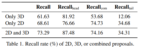table 1을 통해 향상을 볼 수 있으며, 특히 rare class에 대해 2D and 3D가 향상된 것을 볼 수 있다.
