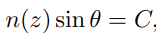 refraction rate는 z에 반비례한다. optical 원칙에 따라, 빛의 ray는 Snell's법칙에 따라 각 θ만큼 왜곡된다. (C는 상수값)