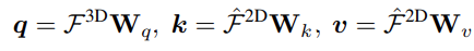 mask M()을 기반으로 masked 2D-to-3D cross-attention을 제안한다. N개의 point P와 corresponding feature F_3D를 입력하면, n개의 2D projected map에 대응하는 2D feature을 출력하는 것을 목표로 한다. 3D point feature를 cross-attention의 query로 사용하며, corresponding 2D feature를 key와 value로 사용한다. 2D pixel의 local feature들은 매우 관련있기 때문에 k개의 이웃한 feature도 key와 value로 사용한다.