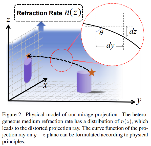 일직선의 projection은 occlusion을 유발하기 때문에 왜곡된 ray를 통해 occluded object를 볼 수 있는 mirage현상을 참고한다.