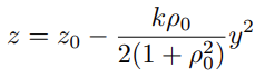 y-z평면에 curve된 light ray의 공식은 아래와 같다.