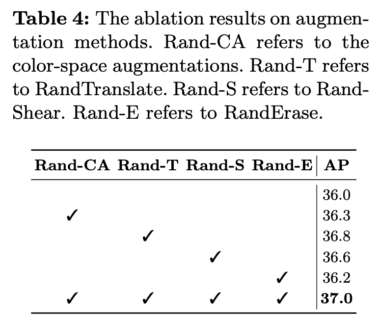 Strong augmentation 기준으로 실험해본 결과 모든 augmentation이 학습에 긍정적인 효과를 주었다.