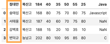 df = pd.read_excel('score.xlsx', index_col='지원번호') # index 설정